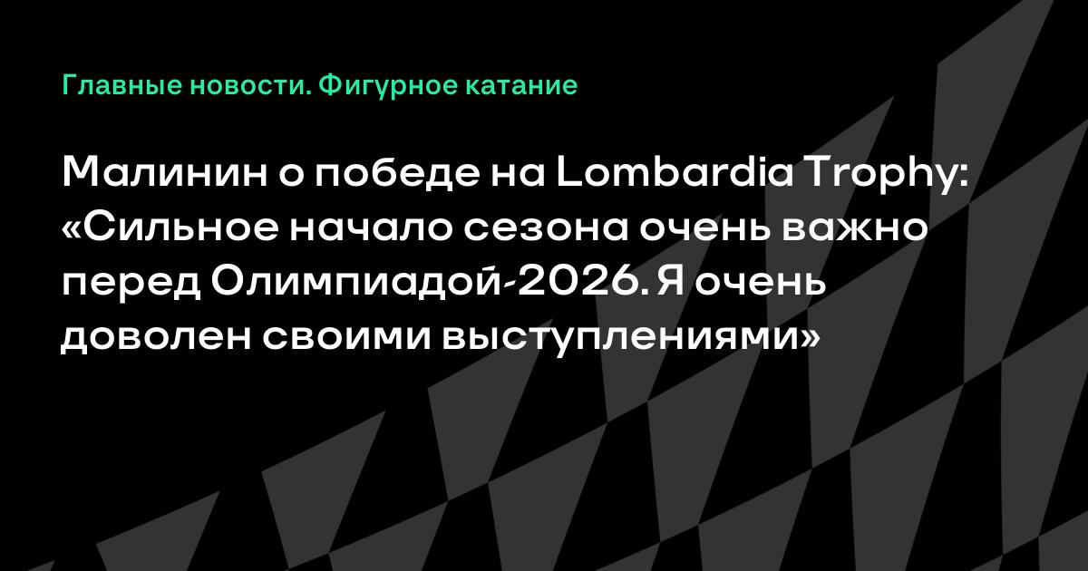 Малинин о победе на Lombardia Trophy: «Сильное начало сезона очень важно перед Олимпиадой-2026. Я очень доволен своими выступлениями»