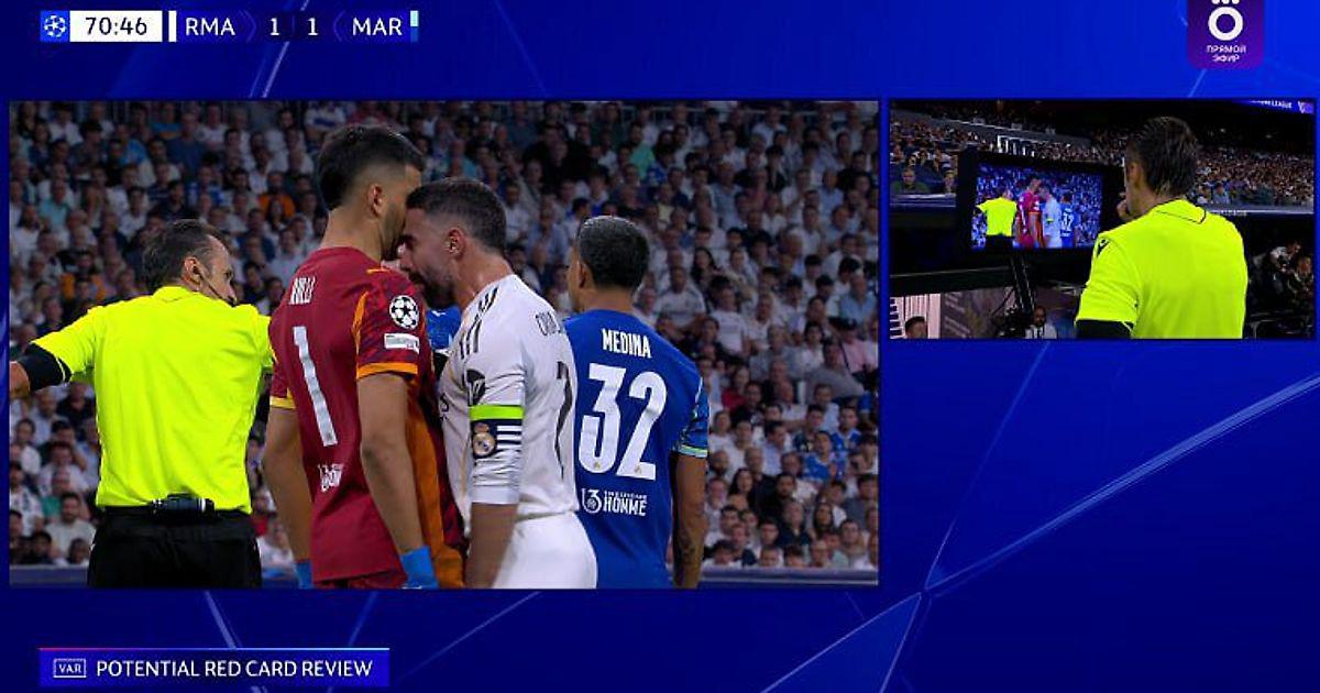 Карвахаль удален за удар лбом в лицо вратарю «Марселя» Рульи после спора в штрафной