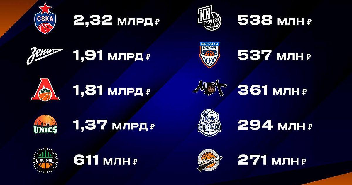 У ЦСКА самый большой бюджет в Лиге ВТБ (2,32 млрд) по итогам сезона-2024/25