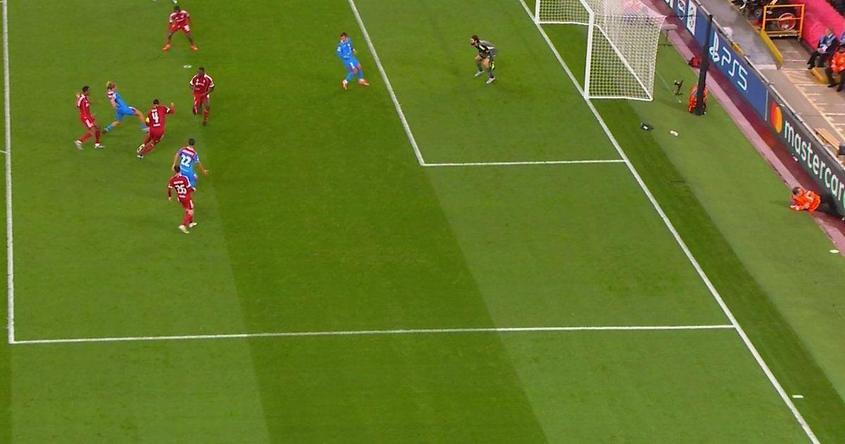 На 45-й минуте хавбек мадридцев Маркос Льоренте при счете 0:2 забил в тот момент, когда его одноклубник Антуан Гризманн находился перед воротами мерсисайдцев, но не влиял на эпизод, двигаясь в противоположную от мяча сторону.