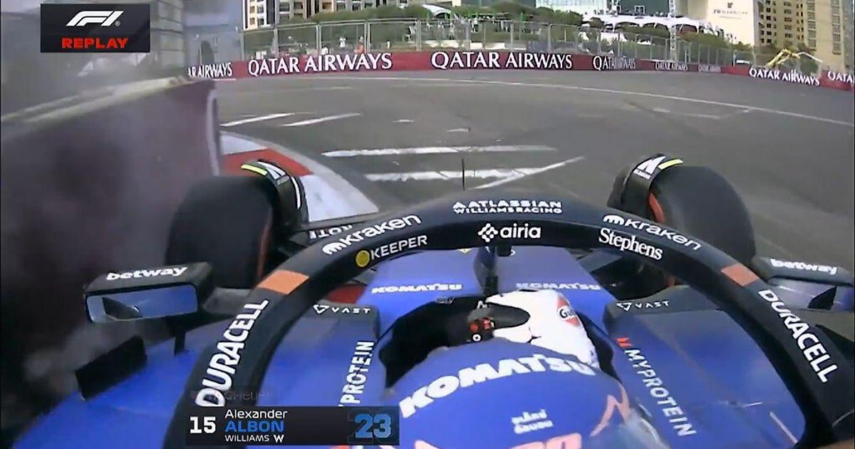 Албон врезался в барьеры, квалификация в Баку прервана красными флагами