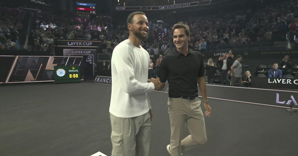 Стефен Карри и Роджер Федерер дали старт теннисному матчу Кубка Лэйвера
