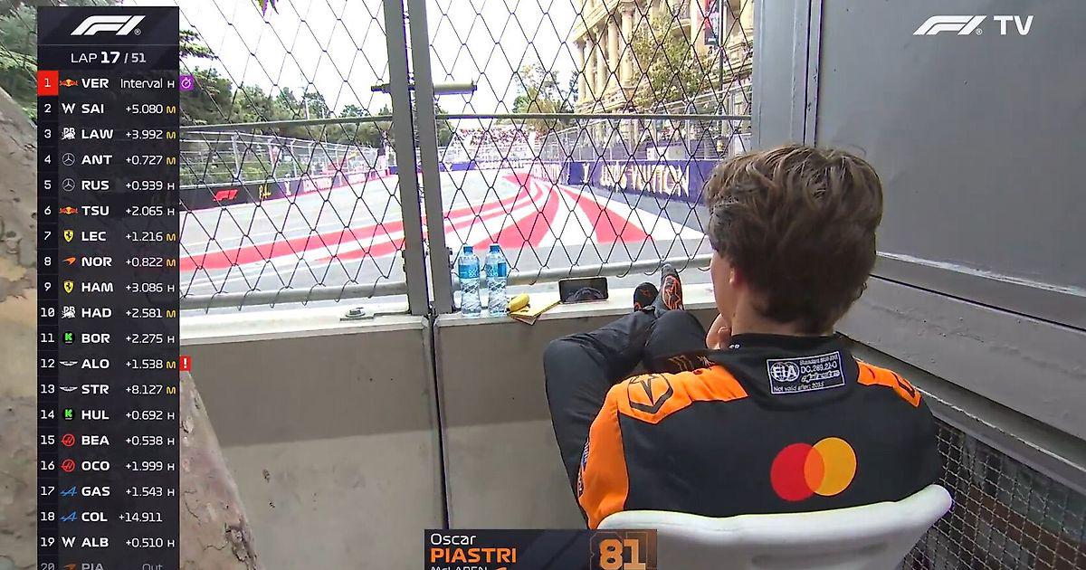 Пилот «Макларена» Оскар Пиастри наблюдает за коллегами, которые продолжают соревноваться на Гран-при Азербайджана.