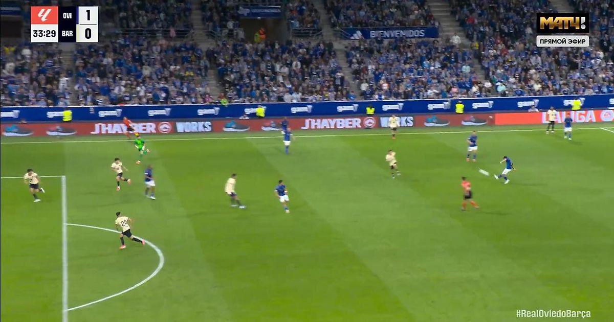 «Барселона» после ошибки Гарсии пропустила от «Овьедо» почти с центра поля. Рейна перехватил пас голкипера, выбежавшего из штрафной, и в касание пробил по воротам