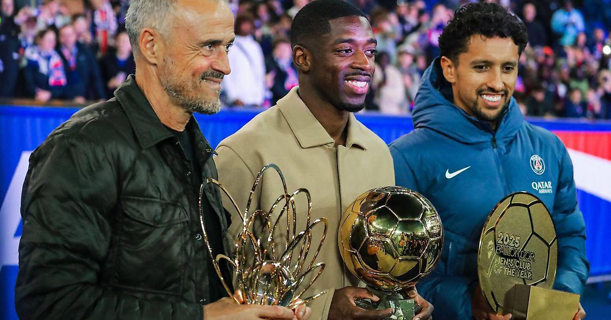 Усман Дембеле показал «Золотой мяч» болельщикам «ПСЖ» после матча 6-го тура Лиги 1 с «Осером» (2:0).