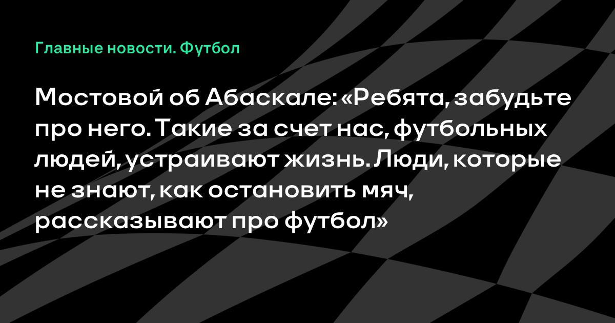 Мостовой об Абаскале: «Ребята, забудьте про него. Такие за счет нас, футбольных людей, устраивают жизнь. Люди, которые не знают, как остановить мяч, рассказывают про футбол»