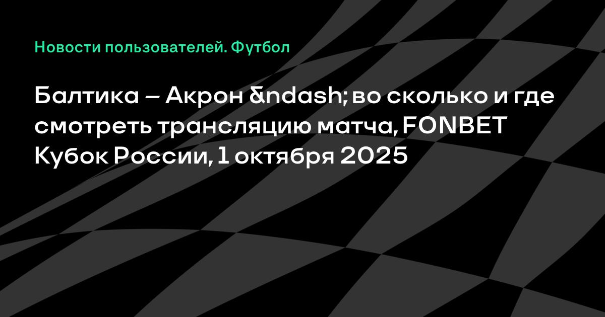 Балтика – Акрон – во сколько и где смотреть трансляцию матча, FONBET Кубок России, 1 октября 2025