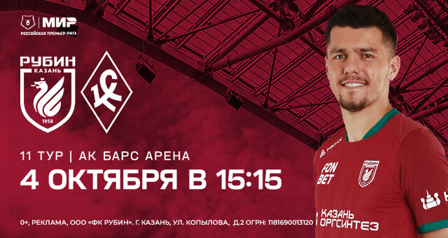«Рубин» сыграет с «Крыльями Советов». Приходите поддержать команду в домашнем матче против самарцев!