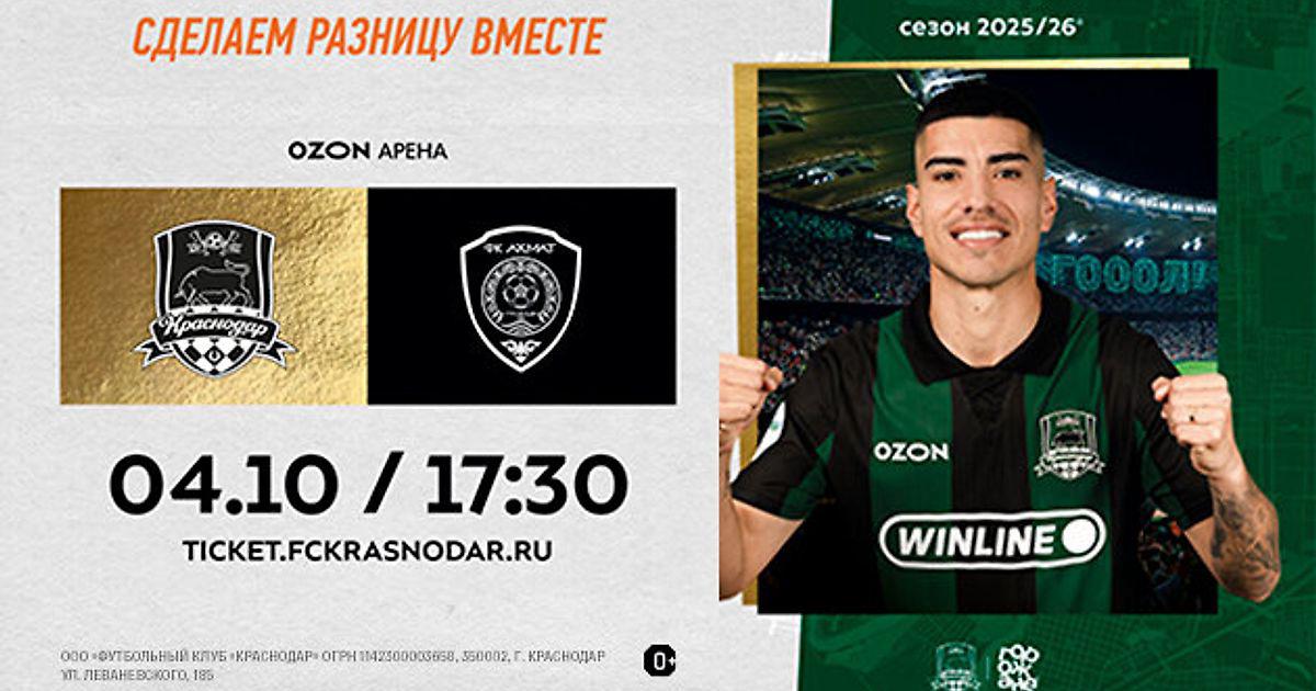 «Краснодар» принимает «Ахмат». Поддержите краснодарцев на стадионе в домашней игре с грозненцами!