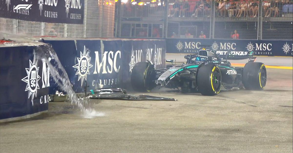Расселл врезался в барьеры, 2-я практика в Сингапуре прервана красными флагами