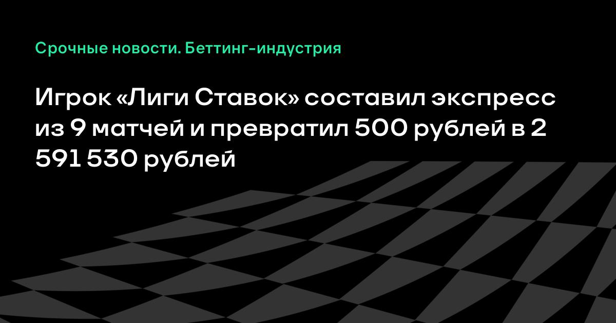 Игрок «Лиги Ставок» составил экспресс из 9 матчей и превратил 500 рублей в 2 591 530 рублей
