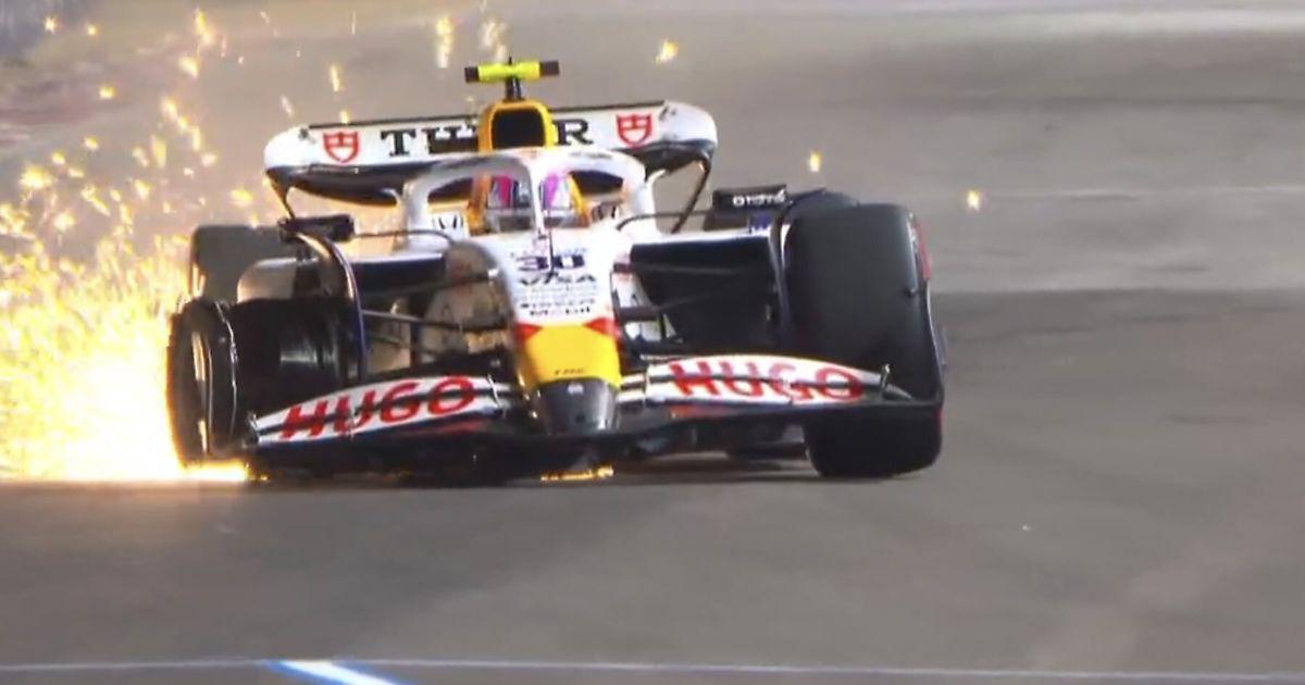 Пилот «Рейсинг Буллз» Лиам Лоусон потерял шину, врезавшись в ограждение во второй практике перед Гран-при Сингапура.