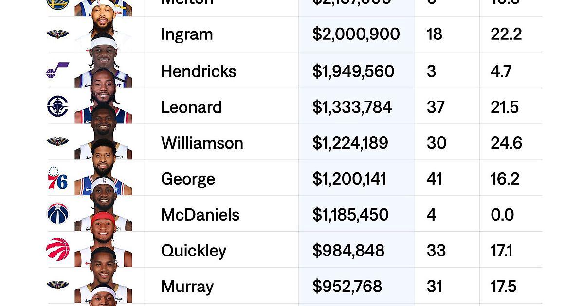Джоэл Эмбиид зарабатывал больше всех в пересчете на проведенные встречи.