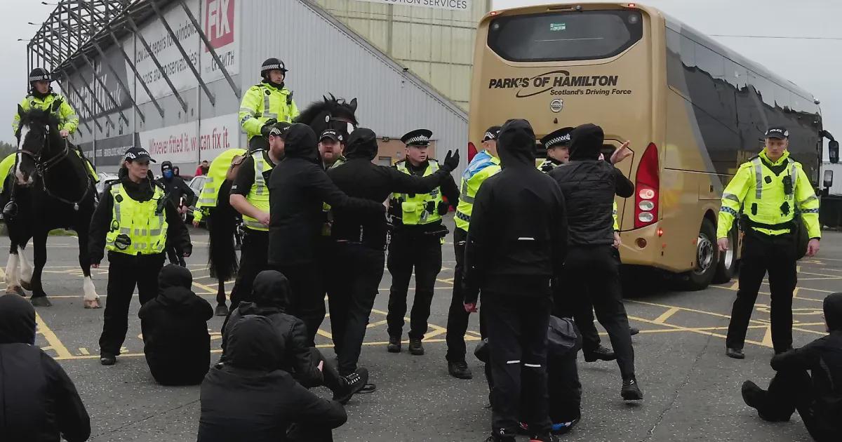 Фанаты идущих 8-ми «Рейнджерс» пытались заблокировать выезд клубного автобуса после 1:1 с «Фалкирком». Тренера Мартина под охраной полиции вывели со стадиона