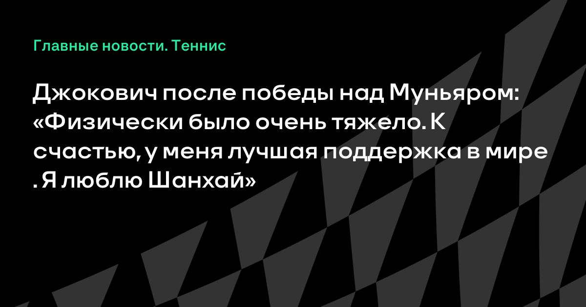 Джокович после победы над Муньяром: «Физически было очень тяжело. К счастью, у меня лучшая поддержка в мире 🫶🏼. Я люблю Шанхай»