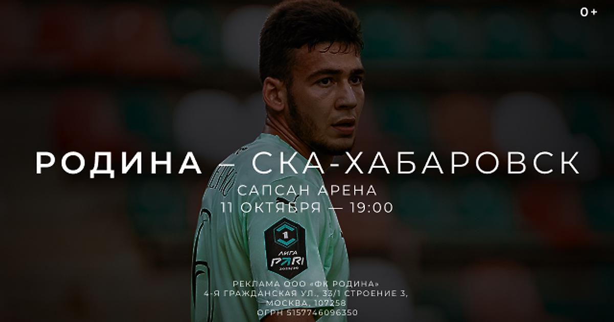 «Родина» сыграет со «СКА Хабаровск» в 14-м туре PARI Первой лиги.