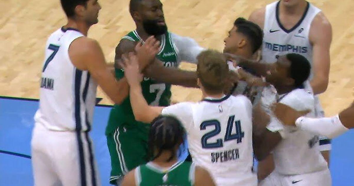 Джейлен Браун и Винс Уильямс сцепились в предсезонном матче и получили по техническому замечанию