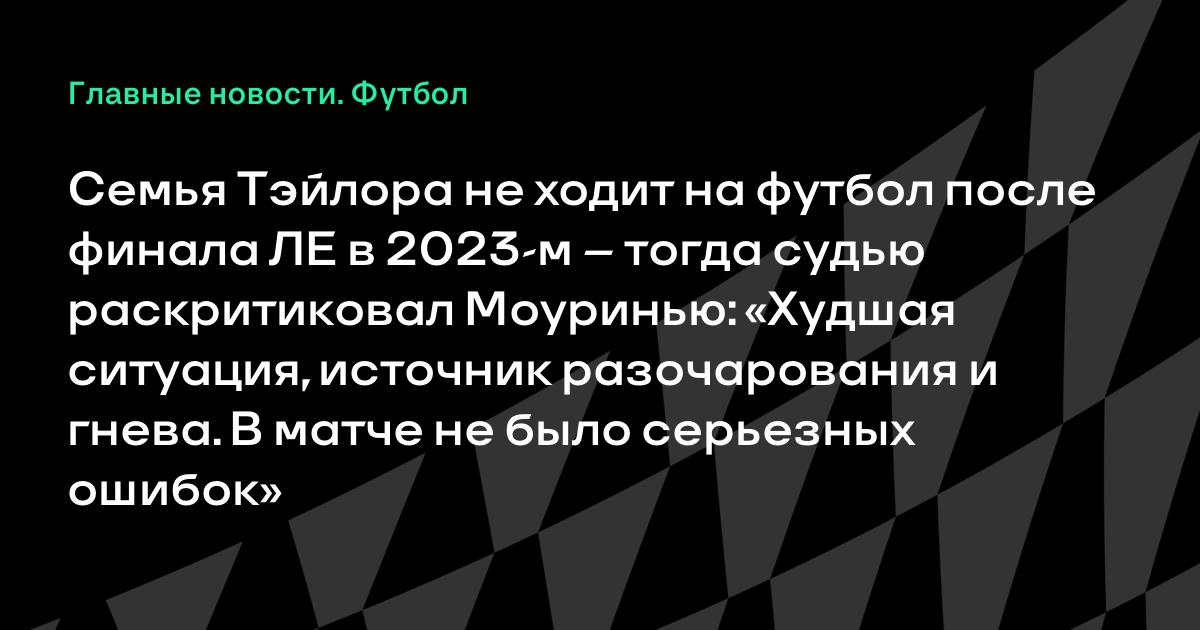 Семья Тэйлора не ходит на футбол после финала ЛЕ в 2023-м – тогда судью раскритиковал Моуринью: «Худшая ситуация, источник разочарования и гнева. В матче не было серьезных ошибок»