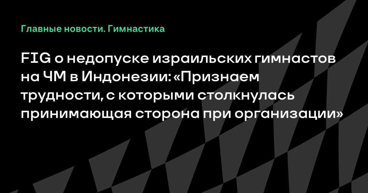 FIG о недопуске израильских гимнастов на ЧМ в Индонезии: «Признаем трудности, с которыми столкнулась принимающая сторона при организации»