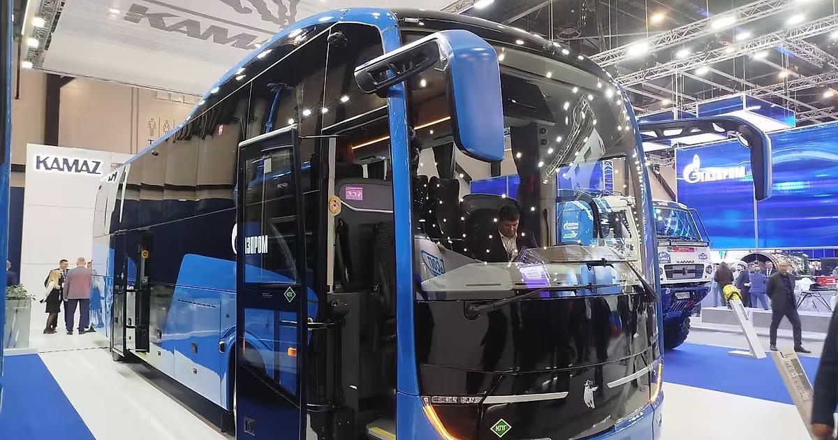 «КАМАЗ» ранее представил новую модель туристического автобуса на природном газе. Транспортное средство оборудовано кухней, холодильником и туалетом.