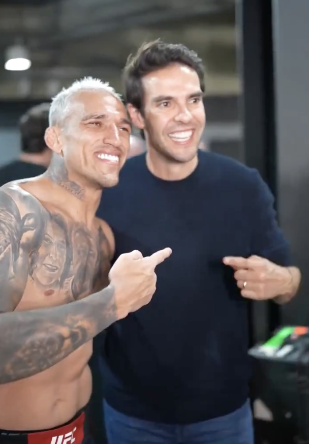 Чарльз Оливейра встретился с обладателем «Золотого мяча» Кака после победы над Гамротом на UFC Rio