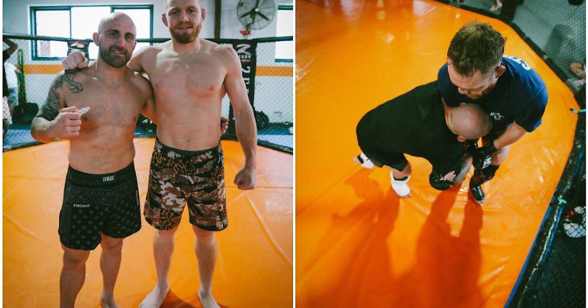 Чемпион полулегкого веса Александр Волкановски провел спарринг с обладателем пояса полусреднего веса Джеком Делла Маддаленой.