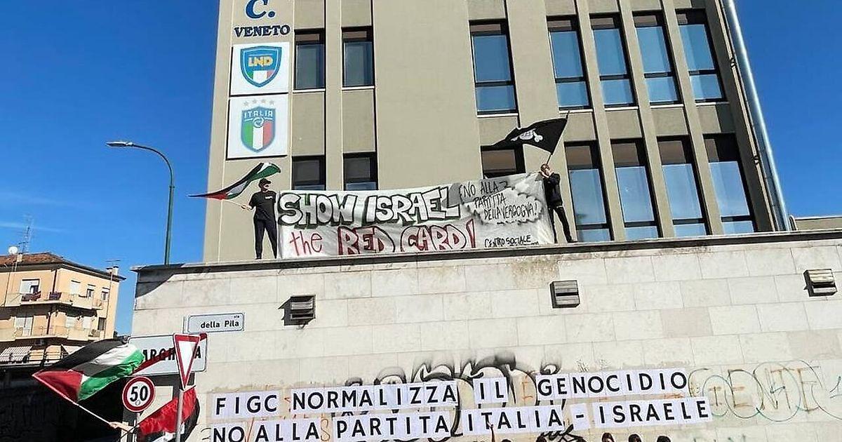 Кроме того, на стене здания была размещена надпись: «FIGC нормализует геноцид. Нет матчу Италии с Израилем».