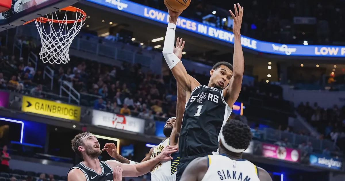 В предсезонном матче с «Индианой» Вембаньяма, едва оторвавшись от паркета, левой рукой отправил мяч в кольцо, подчистив промах Харрисона Барнса с линии штрафных.