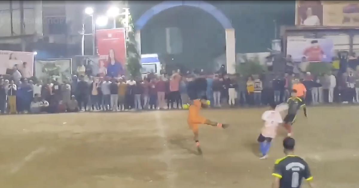 В Индии вратарь забил с центра поля, перед этим попав в перекладину.