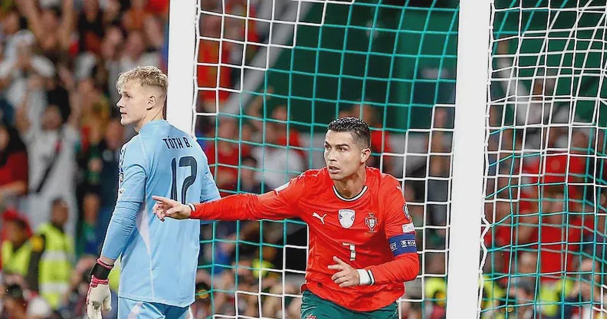 40-летний форвард сборной Португалии сравнял счет в игре в Венгрией на 22-й минуте и вывел свою команду вперед в добавленное к первому тайму время.