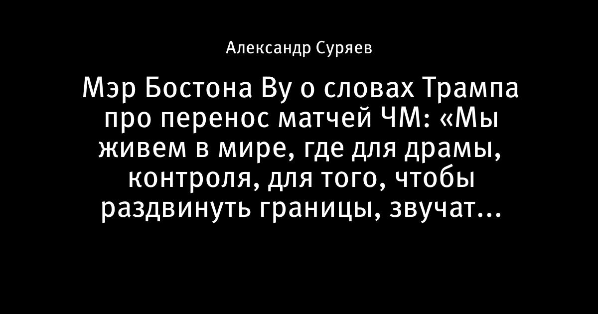 Мэр Бостона Ву о словах Трампа про перенос матчей ЧМ: «Мы живем в мире, где для драмы, контроля, для того, чтобы раздвинуть границы, звучат постоянные угрозы тем, кто не подчиняется»