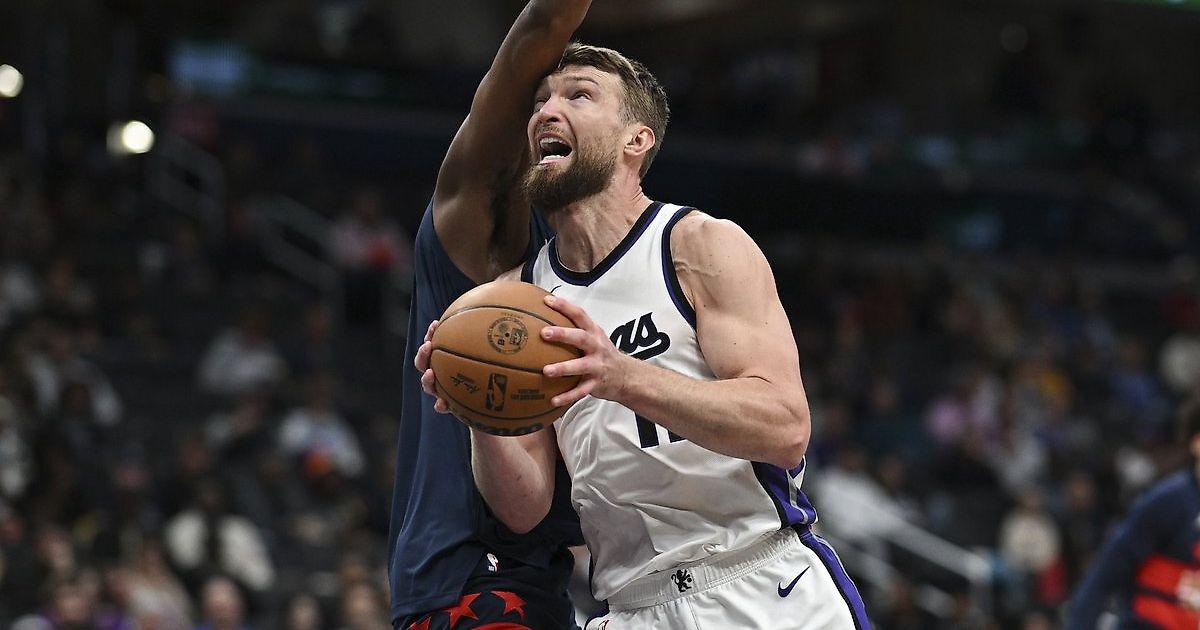 Центровой «Кингз» отыграл 24 минуты, набрав 15 очков (7 из 14 с игры, 0 из 5 из-за дуги), 14 подборов и 5 передач.