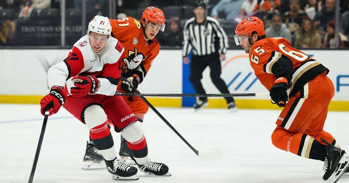 Никишин забил 1-й гол в НХЛ в матче с «Анахаймом» и стал 3-й звездой. У защитника 4 очка и «+6» в 4 играх за «Каролину» в сезоне