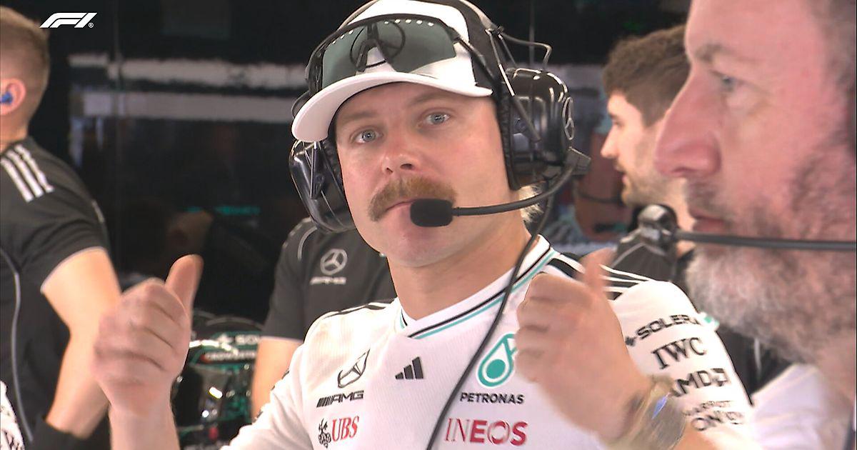 Боттас, присутствовавший в боксах, показал жестами в камеру, что находится тут.