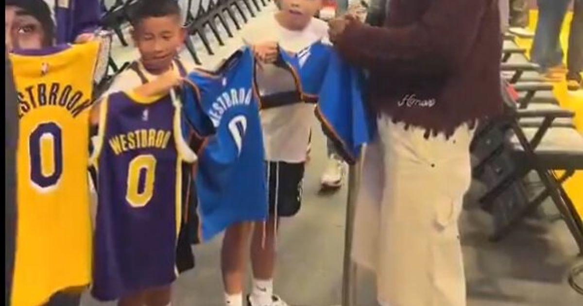 Разыгрывающий провел в клубе из Лос-Анджелеса полтора сезона (2021-23). Подписывая майки, Уэстбрук пропустил детей с формой «Лейкерс». В новом сезоне защитник будет играть за «Кингз».