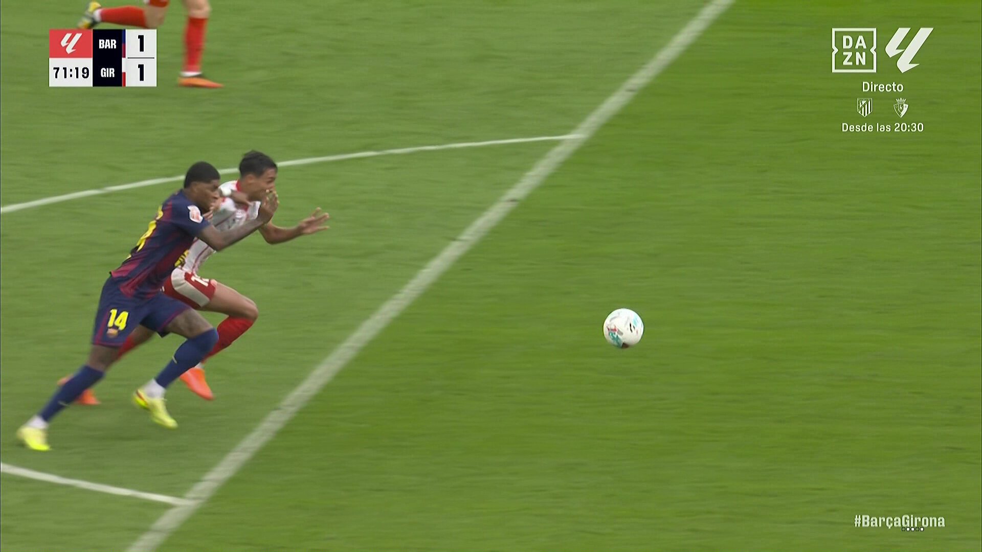 На 70-й минуте матча Маркус Рэшфорд, вбегая в штрафную площадь «Жироны», получил удар рукой по лицу от защитника гостей Витора Рейса. Форвард «Барсы» оказался на газоне. Игроки «Барселоны» требовали назначить 11-метровый, но главный судья Хесус Хиль Мансано зафиксировал фол в атаке.