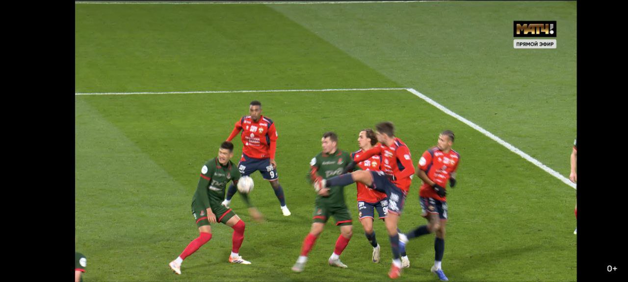 На 32-й минуте матча 12-го тура Мир РПЛ защитник армейцев Игорь Дивеев наносил удар головой в пределах штрафной площади хозяев – мяч попал в плечо защитнику «Локомотива» Сесару Монтесу.