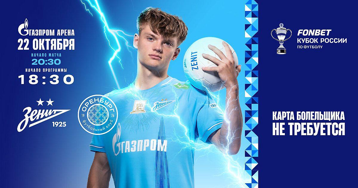 «Зенит» принимает «Оренбург». Поддержите сине-бело-голубых в кубковом матче против оренбуржцев!