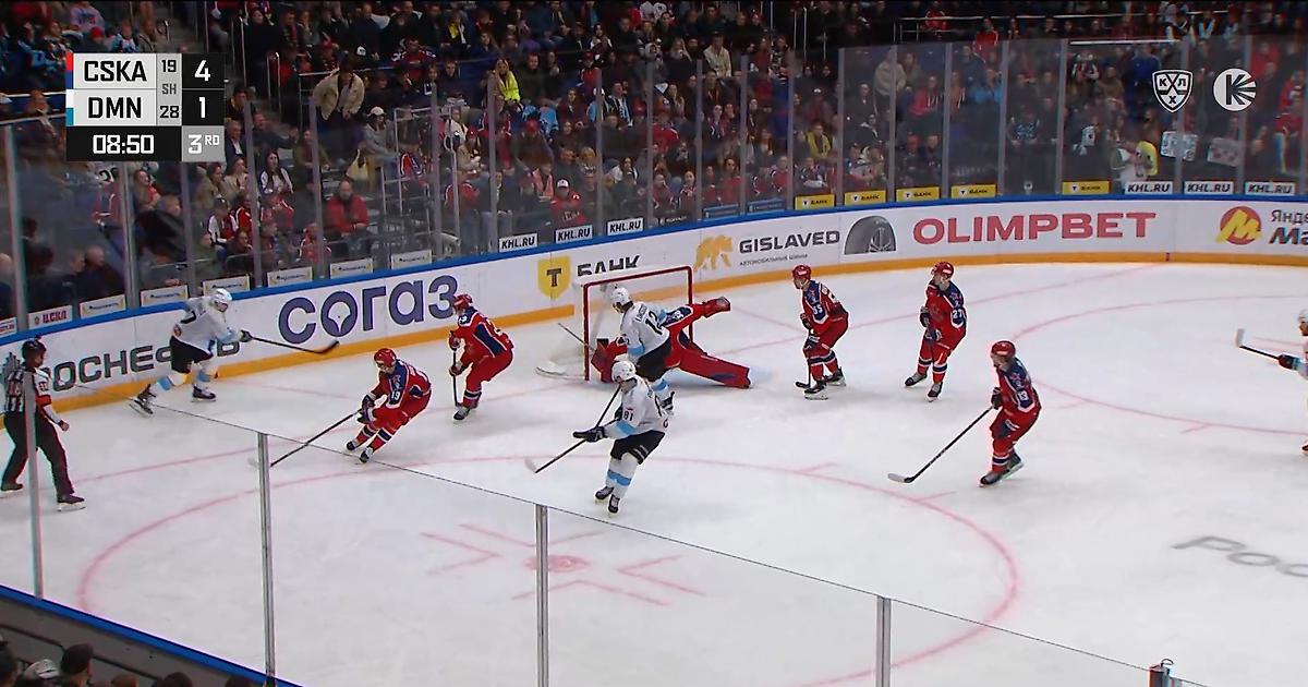 Нападающий минского «Динамо» поразил ворота ЦСКА (3:4, 3-й период). Шайба рикошетом от голкипера залетела в ворота после броска Сэма Анаса с отрицательного угла.