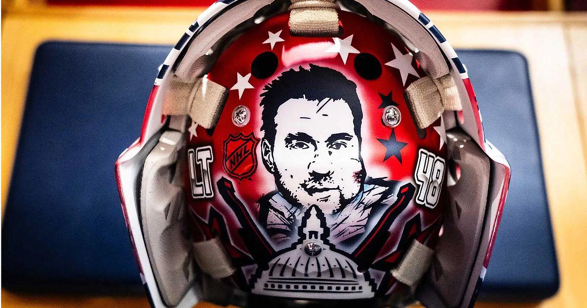 «Вашингтон» показал шлем Логана Томпсона с изображениями Овечкина и Уилсона.