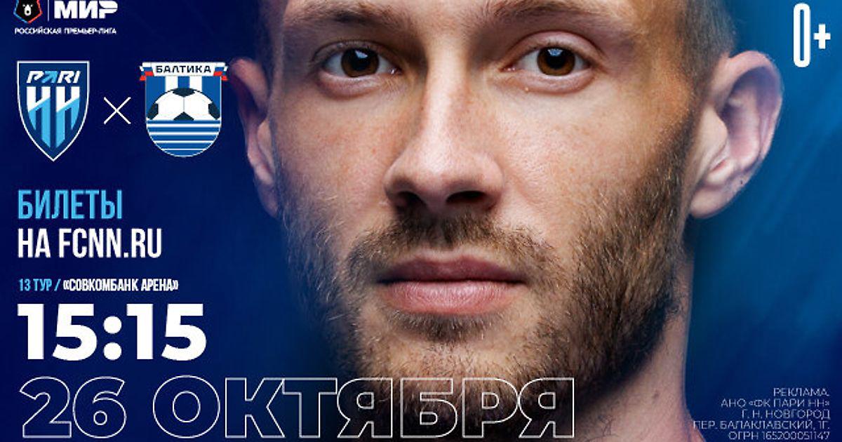 «Пари НН» принимает «Балтику» в 13-м туре Мир РПЛ.