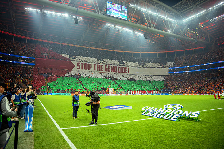 Болельщики «Галатасарая» организовали пропалестинскую акцию.
