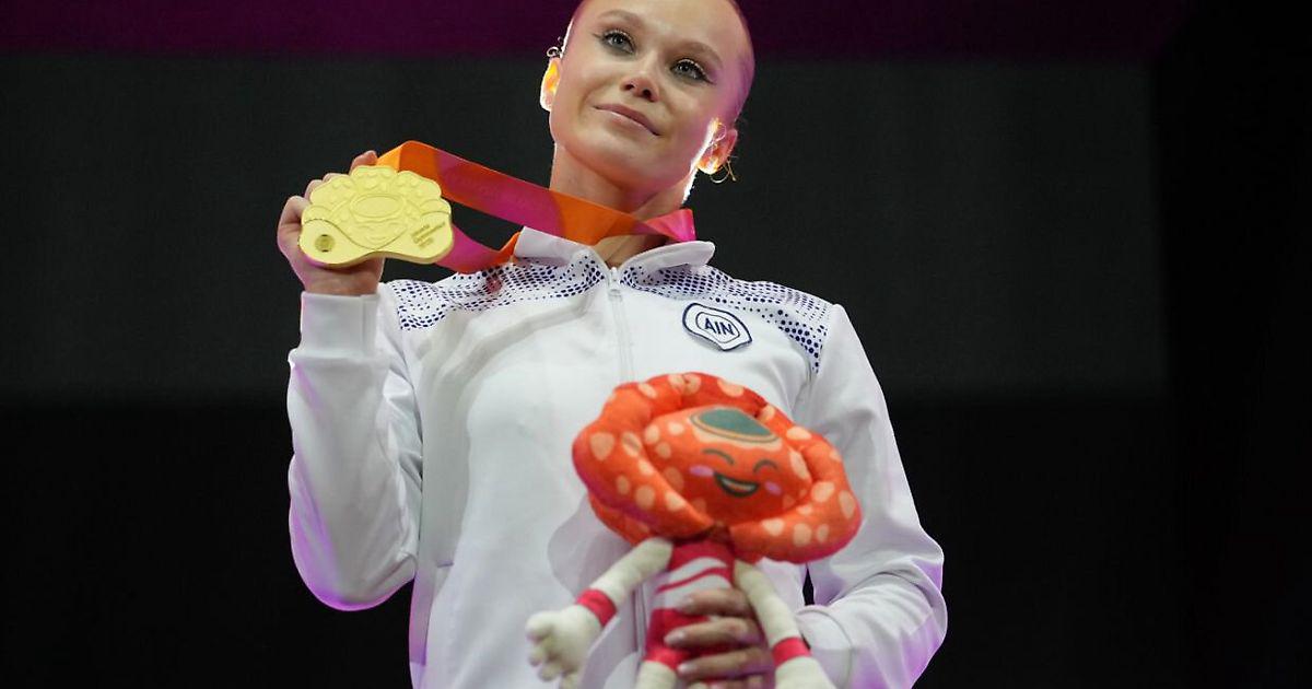 Сегодня российская гимнастка выиграла золото в индивидуальном многоборье.