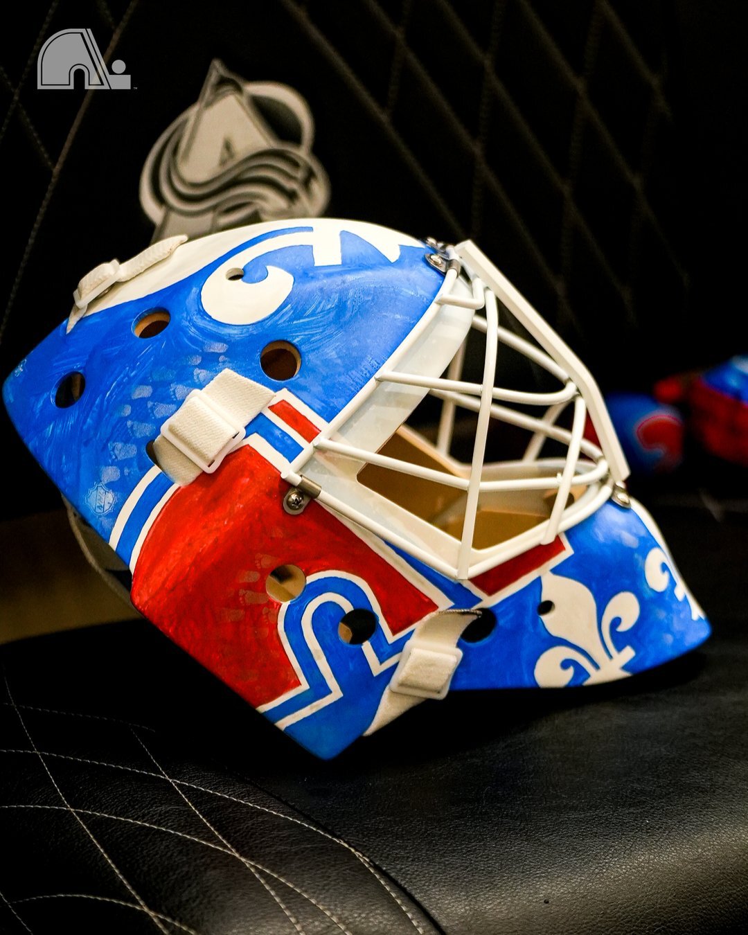 Вратарь «Колорадо» Уэджвуд показал шлем с флер-де-лис, логотипом «Нордикс» и следами снежного человека