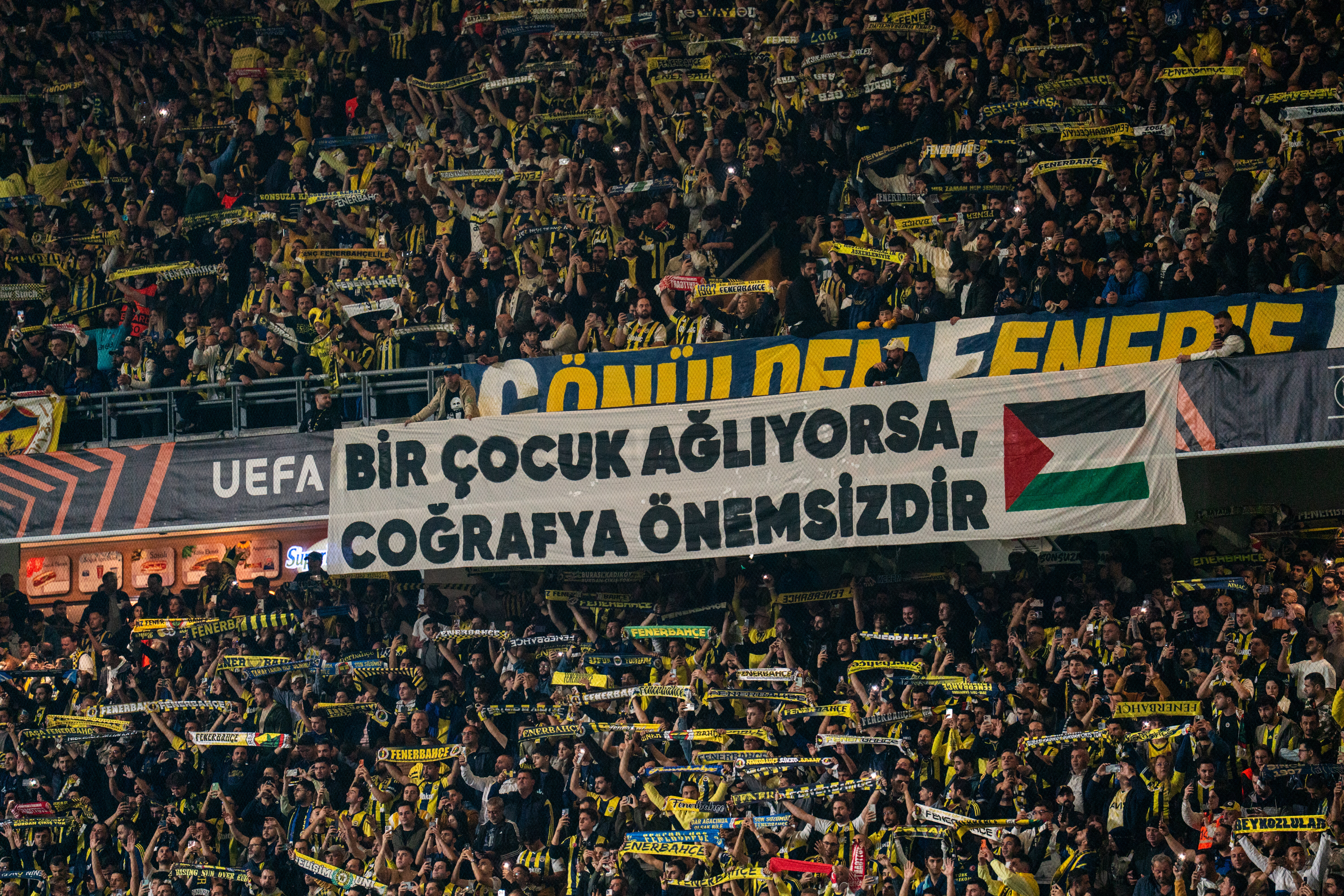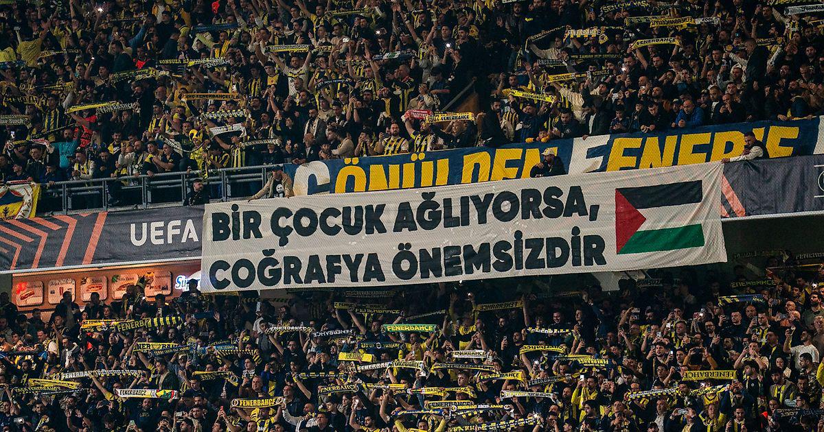 Перед матчем болельщики «Фенербахче» вывесили баннер с флагом Палестины и надписью: «Если ребенок плачет, география не имеет значения».