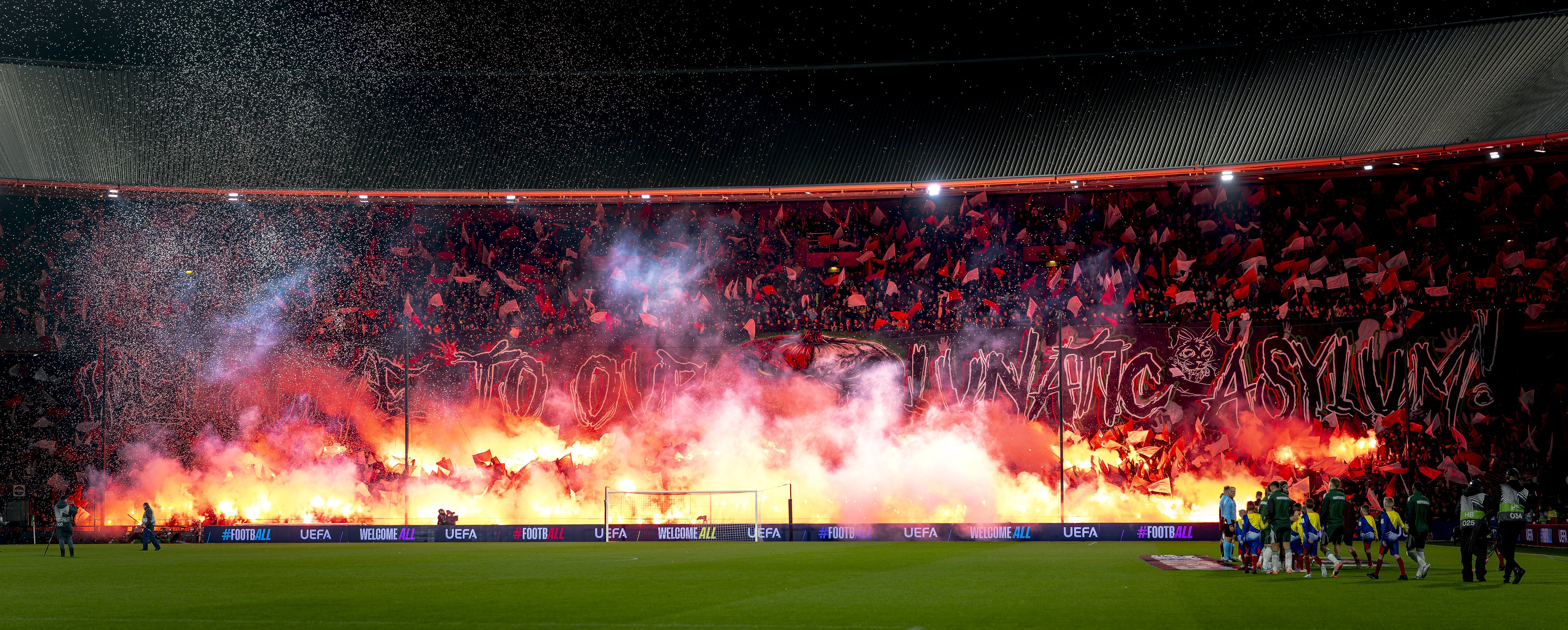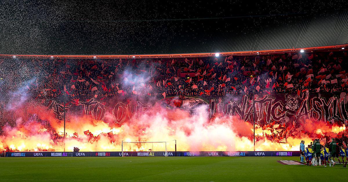 Перед началом встречи фанаты «Фейеноорда» устроили на трибунах перфоманс, сопровождавшийся файер-шоу.