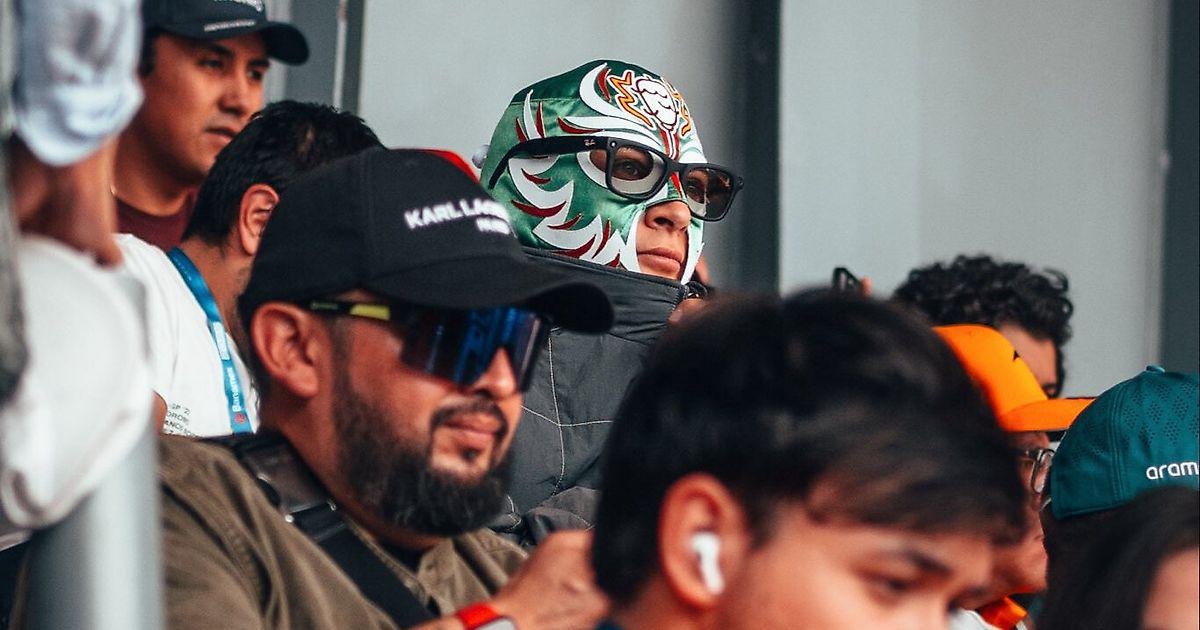 Расселл в маске посетил трибуны во время практики Гран-при Мехико