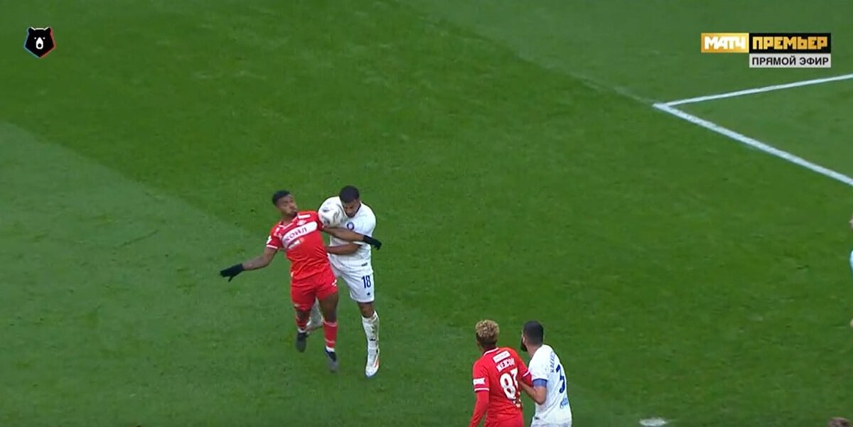 На 29-й минуте хавбек хозяев Жедсон Фернандеш в штрафной отдал пас во второй темп. Защитник москвичей Кристофер Ву был первым и в касание нанес удар в угол – Анри Чичинадзе заблокировал удар, лежа на газоне. Красно-белые пытались привлечь внимание арбитра к возможной игре рукой защитника, но тот убрал руки за спину, удар мячом пришелся в тело. Пенальти не был назначен.