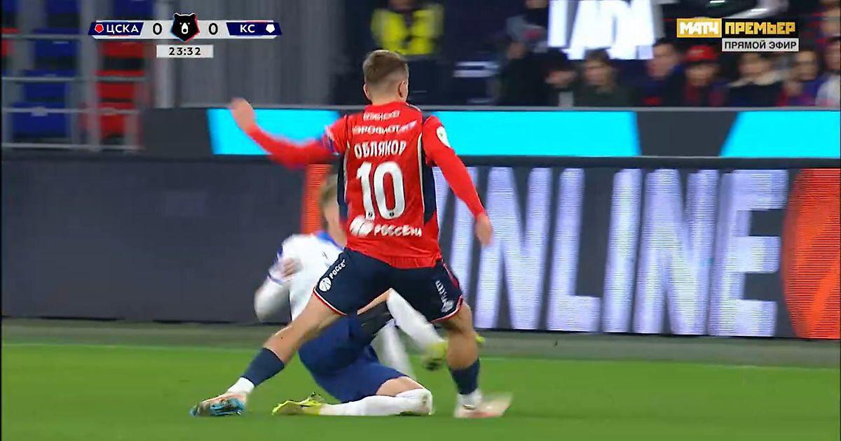 При повторе со спины мы видим, что у него нога отскакивает от мяча и дальше, если бы он хотел сделать больно, то не стал бы сгибать ногу. А здесь он увидел Облякова в последний момент и пытается одернуть эту ногу», – сказал бывший арбитр ФИФА Сергей Лапочкин.