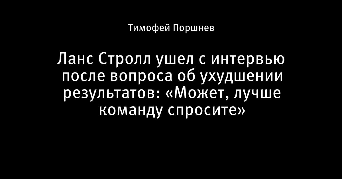 Ланс Стролл ушел с интервью после вопроса об ухудшении результатов: «Может, лучше команду спросите»